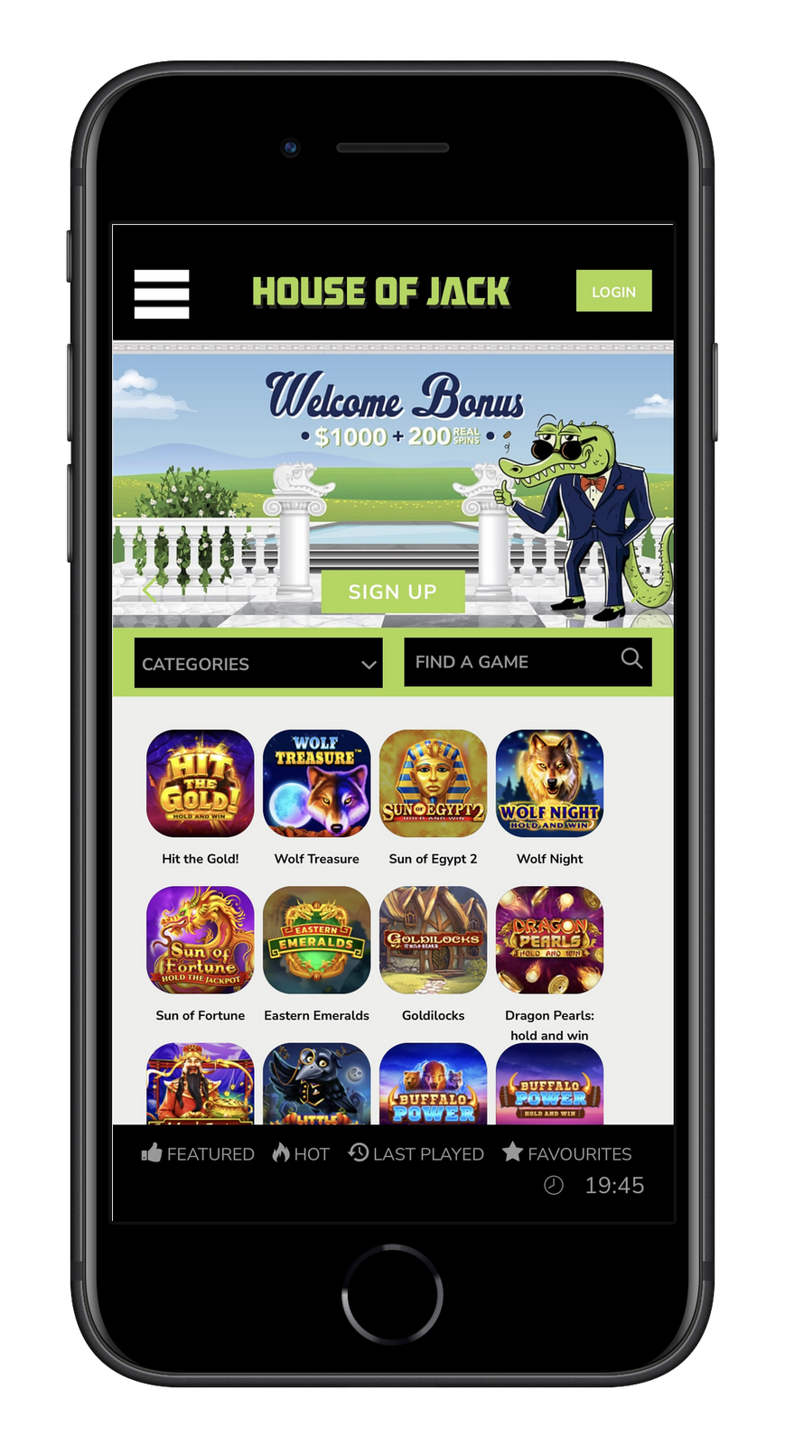The green talisman welcomes everyone who has joined his party and issues a lucrative House of Jack casino sign up bonus. It involves a charge of 1,000 Australian dollars in the form of various incentives and also 200 free spins without wagering: